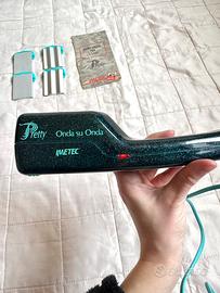 Piastra per capelli Imetec Pretty Onda su Onda completa di piastre intercambiabili e istruzioni. Puoi fare liscio e 2 tipi di onde. Usata, in ottime condizioni. Ovviamente funzionante. (Ci sono foto con il led accesso per dare prova della funzionalità). Colore nero e azzurro. Venduta senza la sua scatola. Accetto offerte.