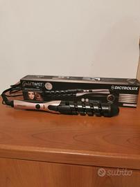 Piastra arricciacapelli 19 mm in ceramica nuova mai usata nera e rosa gold con punta protetta dal calore, leva blocco ciocca, cavo girevole 360°, temperatura piastra 180° con indicatore luminoso di accensione.