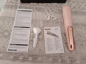 piastra per eliminare le doppie punte della marca Beurer. Usata meno di 5 volte con ancora tutte le componenti. Non serve attaccarla alla spina durante l'utilizzo, si ricarica come un telefonino.