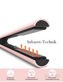 Piastra per capelli con tecnologia agli ioni negativi, il generatore di ioni integrato rilascia ioni negativi, contrasta attivamente la carica statica con effetto anti-crespo e garantisce una maggiore lucentezza. Riduce la carica statica dei capelli e fornisce più seta.