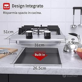 Piastra Piano di Cottura a Gas a 2 Fuochi a incasso. Acciaio inossidabile, per Gas Naturale/Propano., Sicurezza Tramite termocoppia.
