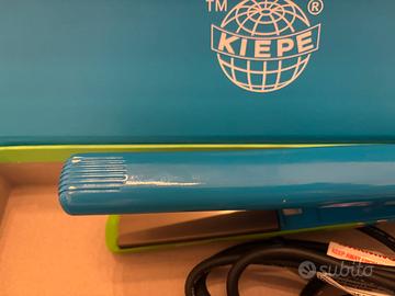 Piastra professionale Kiepe con piastre in titanio e temperatura regolabile fini a 210 gradi. Filo rotante per una migliore maneggevolezza, presenta piccole mancanze di colore sulla parte inferiore dove viene appoggiata.