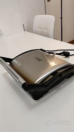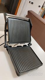 Piastra 3 in 1 - Paaini maker, griglia e piastra - Potenza 1800 W - Piastre con rivestimento antiaderente - Adatto a cuocere panini e sandwich in posizione classica e utilizzabile come grill in posizione inclinata - Capacità: 2/3 panini – 5 porzioni di carne o verdure - Vassoio raccogli-unto incorporato - Apertura a 180° - Avvolgicavo.