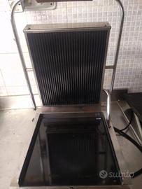 Struttura in acciaio inox piastra in vetro ceramica inferiore liscia superiore rigata dimensioni di cottura cm27x30 volt 230- watt 1700. Ingombro:34x45x19h -peso kg 14. Made in Italy -conforme alle normative. Vendo per inutilizzo.
