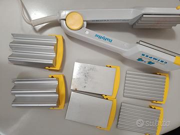 Piastra x capelli con 4 tipi di piastre intercambiabili per effetti diversi. Lisci, frisée, onde e un'altro tipo.
