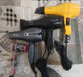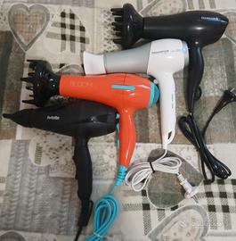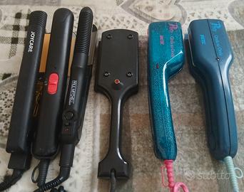 Come da titolo vendo 6 piastre per capelli,5 arricciacapelli,3 spazzole elettriche,7 asciugacapelli di diverse marche,1 asciugacapelli mini da viaggio,2 ferri da stiro con caldaia,2 ferri da stiro normali e 1 ferro da stiro verticale. Tutto il lotto sono stati usati solo a 2 fiere come dimostrazione,il tutto in ottimo stato,totale pezzi 27,vendo in lotto ad euro 100 Possibilità di vendere anche singolarmente,i prezzi vanno da 5 ad un massimo di 20 euro. Possibilità di visionare le piastre,asciugacapelli e ferro da stiro e provarli.