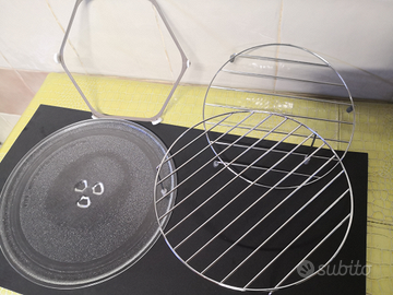 Vendo piatto microonde nuovo e mai usato che misura cm 30 assieme al suo supporto girevole più 2 alzate interne di diverse misure in acciaio inox nuove anch'esse.
