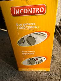 Vendo piccola stufetta nuova Termoventilatore con termostato regolabile a due posizioni di potenza ( 1.000/2.000 W) Sistema di protezione anti ribaltamento Indicatore luninoso di funzionamento Maniglia per un facile trasporto