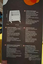 Vendo piccolo termoconvettore nuovo ancora imballato potenza 500 watt colore bianco con termostato regolabile e spia. Ideale per piccoli ambienti tipo bagni ecc. Fornito di 2 piedini da montare e istruzioni. Le misure sono riportate in foto. NON SPEDISCO. Solo ritiro a mano