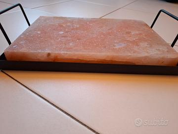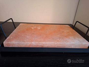 Vendo pietra al sale rosa dell'Himalaya per grigliare e/o continuare la cottura a tavola, senza grassi aggiunti. Dotata di supporto in ferro con manici. Si può usare sul barbecue e poi proseguire la cottura in tavola, o tenerci in caldo i cibi: carne, pesce, verdure, senza bisogno di aggiungere olio.
