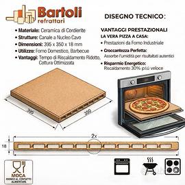Pietra refrattaria per pizza,pane,focacce,torte salate Prodotto artigianale di alta qualità. Misure standard per qualsiasi forno doemstico (39,5 x 35 Cm) con possibilità di utilizzo su fornello a gas e barbecue