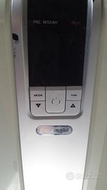 Pingino DE LONGHI PAC W10 AH il più potente della categoria RISCALDAMENTO: resistenza da 2000 W, per un efficace riscaldamento invernale. FUNZIONE TURBO POWER: più potenza - fino a 10000 BTU/h - grazie all'esclusiva combinazione di funzionamento ad acqua e ad aria. SUPERFREDDO: funziona ad acqua per ottenere fino a 9500 BTU/h; se non rimane acqua nella tanica interna, l'unità funziona automaticamente ad aria. FREDDO: funziona ad aria, quando c'è bisogno di una potenza di raffrescamento normale (8000 BTU/h). Adatto per ambienti fino a 95 m3 e paragonabile a portatili di ultima generazione da almeno 15000Btu (non sono davvero nulla rispetto a questo - li ho in ufficio!!) Perfetto usato pochissimo e molto efficiente Con tubo di scarico flessibile in alluminio praticamente nuovo Meglio ritiro di persona Spese di eventuale spedizione non incluse