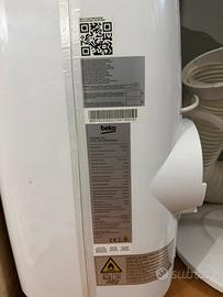 vendo pinguino beko usato pochissimo , come nuovo . la macchia marrone davanti é residuo di scotch e si toglie con un po di sgrassatore o solvente. pinguino completamente funzionante , con anche telecomando e possibile controllo tramite applicazione sul telefono. completo di scatola e tubo di scarico aria