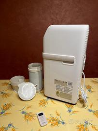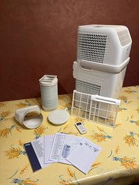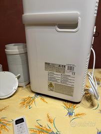 Pinguino Compact PAC ES72 CLASSIC è piccolo ed efficace. Condizionatore ecologico dotato di una funzione deumidificante e di 3 velocità della ventola, che consentono un raffreddamento più silenzioso alla velocità minima. Dotato di display LCD con comandi a sfioramento e un pratico telecomando, oltre a maniglie e ruote orientabili integrate per un facile trasporto. L'articolo è stato acquistato lo scorso anno e utilizzato solo per una settimana per un anziano. A causa del brevissimo periodo d'uso, non presenta segni di usura ed è in condizioni pari al nuovo. SPECIFICHE : -Tipo: Condizionatore portatile monoblocco -Funzioni condizionatore: Raffreddamento, Deumidificazione, Ventilatore -Adatto per stanze fino a: 60 m3 -Capacità di raffreddamento (max): 8300 BTU/h -Emissione acustica: 65 dB -Numero di velocità: 3 Dimensioni: -Larghezza: 29,6 cm -Profondità: 36,1 cm -Altezza: 68, 9 cm -Peso: 25,5 kg