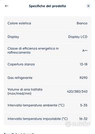 Dispositivo ancora in garanzia fino ad estate 2027. Funziona molto bene, consigliato per monolocali/bilocali. In perfette condizioni, comsuma poco.