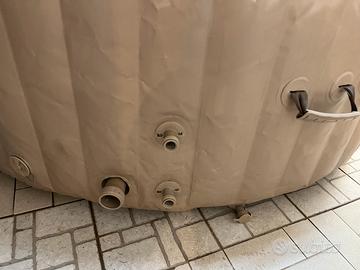 Intex 28426EX - PureSpa Vasca Idromassaggio Gonfiabile Bubble Massage, 4 posti, 120 Getti, Riscaldatore, PVC, Beige, 196x71 cm