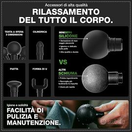 Include sei testine in silicone idrorepellenti, delicate sulla pelle e igieniche, che permettono un massaggio mirato per alleviare tensione, affaticamento muscolare e mal di schiena.