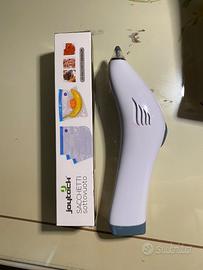 Pistola ( a batteria) per aspirare in sottovuoto sacchetti alimenti. 10 sacchetti (22x21cm) preposti con foro.