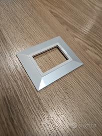 Placca in metallo per scatole rettangolari, colore bianco lucido micalizzato, 3 moduli. Fornita con cornicetta bianca RAL 9010. Supporto da utilizzare: 44A03. Dimensioni: 120 x 96 mm.