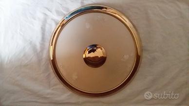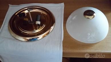 Plafoniera ottone e vetro satinato decorato , luci ( 2 portalampade E 14 )