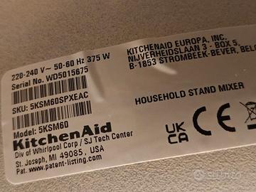 Per maggiori info e dettagli sulle caratteristiche potete consultare il sito kitchenaid.it ed inserire nella ricerca il codice 5KSM60SPXEAC.