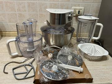 Vendita planetaria con annessi accessori. Il frullatore presenta dei graffi esternamente ma è perfettamente funzionante. Le lame sono ancora imballate. È dotata di tutti gli accessori come da foto. Non dispone del libretto d’istruzioni d’uso.