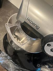 H.Koenig Planetaria Impastatrice multifunzione in acciaio inox Potente 1000 W, 4 velocità, frusta, mixer, gancio, coperchio antischizzo