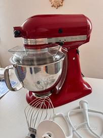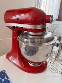 Planetaria impastatrice a testa ribaltabile Kitchenaid Artisan color rosso. Completa degli accessori come da foto, usata pohissimo ed in ottime condizioni. Ciotola in acciaio inox 4,8 Litri Ritiro a mano zona Legnago - Verona