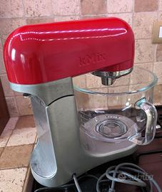 Kenwood Kmix51G Capacità ciotola in vetro: 5 l Potenza a freddo: 500 W Livelli di velocità: 6 Fruste: Gancio impastatore, Frusta a filo Peso: 8 kg Dimensioni (AxLxP) 33x29,3x35,5 cm Macchina poco usata, perfettamente funzionante, ottime condizioni generali, presenti alcuni segni sulla parte posteriore come evidenziato in foto.
