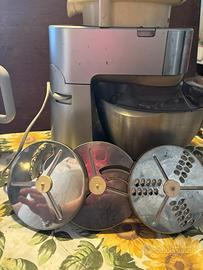 Vendesi planetaria Kenwood completa di ciotola acciaio con 3 tipi di ganci, frullatore, spremi agrumi, estrattore, mixer con 3 dischi di taglio. Usata pochissimo per passaggio al bimby. Gli accessori mai usati.