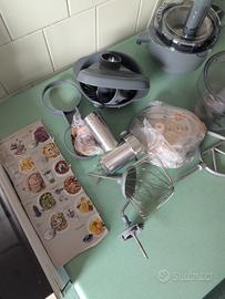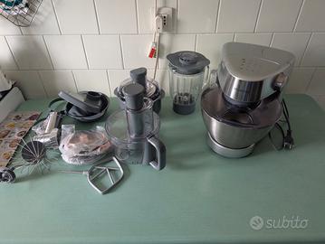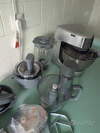 Kenwood KHC29.P0SI Impastatrice Planetaria Prospero+, Ciotola 4,3L, Frullatore in vetro 1,2L, con lame/dischi in acciaio da 1,4L, Spremiagrumi, Tritacarne, Centrifuga, tutto quello raffigurato nella foto numero due.