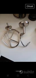 Planetaria Kenwood major titanium usata ma in perfette condizioni completa di accessori come i ganci impastatore, frusta, frusta K, frusta k gommata, bicchiere frullatore in vetro sfogliatrice con anche il rullo per tagliatelle, spremiagrumi, robot con dischi per grattugiare, taglio a juienne e fiammifero. Scatola originale e istruzioni di ogni accessorio