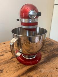 Vendo planetaria Kitchen Aid colore rosso metallizzato da 4,8 litri Misure: P=26 L=20 H=45 Contiene 7 accessori Potenza 300 WW Usata pochissime volte, come nuova. Prezzo trattabile