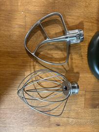 In dotazione frusta in acciaio inox, gancio impastatore e frusta con bordo flessibile, libro completo con ricette. Vendo causa inutilizzo, senza scatola originale, eliminata per questioni di spazio. attualmente in vendita sul sito ufficiale kitchen aid oppure su westwing al doppio del prezzo.