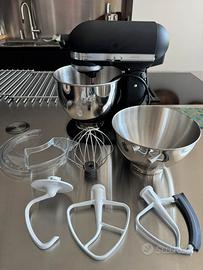 Vendo planetaria Kitchenaid completa di accessori. Valore 599,00€. Vendo ciotola acciaio inox da 4,8l, ciotola in acciaio inox da 3 l, coperchio anti spruzzo, frusta in silicone, frusta piatta, frusta a filo, gancio impastatore. Acquistata a maggio 2021, priva di scatola. Colore nero opaco. Usata forse 5 volte.