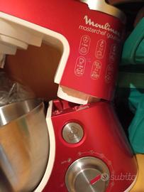 Planetaria Moulinex 3 LT ciotola in acciaio completa di frullatore foglia e gancio. Funziona unico neo come in foto la molla e rotta . Se sistemata e un buon prodotto o per pezzi di ricambio.
