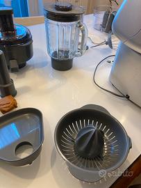 Planetaria impastatrice con gancio, foglia per torte e frista per montare. Robot da cicina con dischi per affettare e grattugiare. Spremiagrumi. Frullatore con bicchiere in vetro. Centrifuga per frutta e verdura. Tritacarne. Ottimo stato. Tutti accessori originali. Acquistato niovo nel 2021. In caso di spedizione considerate 40 euro di spese in aggiunta