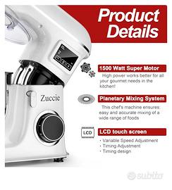 Zuccie Planetaria 1500W 8L Impastatrice Planetaria Robot da Cucina 6 Velocità Fermentazione e LCD Temporizzazione Multifunzione Impastatrice Professionale. Vendo per sbagliato acquisto e non posso restituire perché ho buttato la scatola.