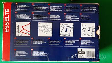 Vendo plastificatrice a caldo ESSELTE modello PL9-4RE, provvista di scatola. Plastificazione a caldo senza necessità di cartone protettivo (carrier free) Supporta Pouch di spessore tra 80 e 125 micron. La plastificatrice supporta i seguenti formati: Lettera, A4, A5, A6, ID. E' in condizioni ottime (nessun graffio, macchia, rottura) e funziona perfettamente. Usata ma conservata con cura. Peso: 3,1 Kg circa