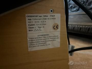 Podoscopio “Chinesport” – modello L (cod. 02.2.06030) – usato, ritiro a mano Vendo podoscopio marca Chinesport (modello L, codice 02.2.06030), ideale per podologo / ortopedico / studio fisioterapico. Dettagli: •La pedana LED funziona perfettamente; la luce è attiva e regolare. •Vetro e specchio sono integri, senza crepe né rotture. •Struttura stabile e solida. •Unici difetti: leggerissimi segni d’usura sulle parti inferiori e angoli della base (come da foto). •Perfetto per analisi dell’impronta plantare in stazione eretta — utile per valutazione postura/piedi o realizzazione plantari. Condizioni e pagamento: Usato ma funzionante; Contatti: Scrivete pure per ulteriori foto o per fissare un orario per il ritiro.