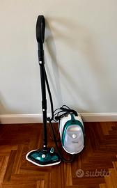Polti Vaporetto Smart 100_T è un pulitore a vapore con autonomia illimitata per la pulizia di tutta la casa. Originale ed utilizzato solo una volta, completo degli accessori e di 5 FRESCOVAPOR, deodorante cattura odori al profumo di lavanda.