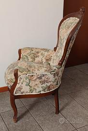 poltrona stile barocco in legno e stoffa usata