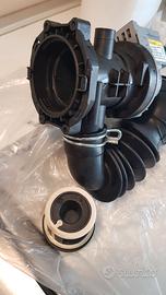 Pompa di scarico con filtro e tubo. cod. 16002577900 art. RN0022 mod. M254. Installata su lavatrice Indesit PWDE 7125 e compatibile con vari modelli.