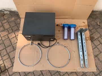 Completa di filtri ( 5 micron / 1 micron ) , staffe per fissaggio a muro e due nebulizzatori da fissare su vento.