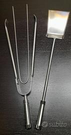 Set attrezzi per caminetto in acciaio inox satinato e lucido, composto da n. 1 solido contenitore cilindrico porta-attrezzi in acciaio satinato alto cm 30, diametro cm 17 + n. 4 bellissimi e funzionali attrezzi: pinza, paletta, attizzatoio, scopino lunghi cm 60 (pinza artigianale in omaggio), peso totale kg 3,5 ca. Moderno, elegante, durevole nel tempo, Comex marca di pregio nel settore, poco usato e conservato benissimo, vendo a euro 100