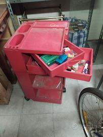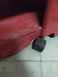 porta contenitore color rosso per riporre la cancelleria. da riparare nella parte inferiore.