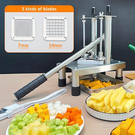 Potato Cutter Chip Cutter, Heavy Commercial Vertical Manual Frites Cutter for Household, Equipped with 2 Replacement Blades (1/2 Inch and 1/4 Inch) and 1 Storage Compartment
