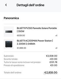 Vendo Power Station 2.200W completa di pannello solare 350W, ottima marca Bluetti, per errato acquisto.