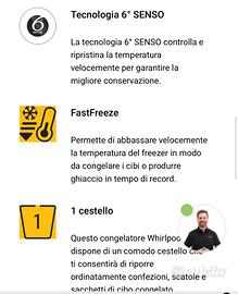 All’interno è molto profondo e contiene una vaschetta per riporre sopra gelati o cibi che possono schiacciarsi.