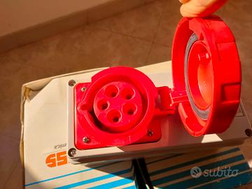 Presa CEE rossa con contenitore stagno e coperchio